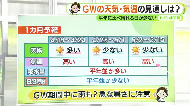 そろそろゴールデンウィークの天気も気になる頃、最新の1ヵ月月予報が出ました。