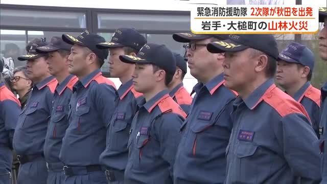 岩手県大槌町の山林火災は、27日で発生から6日目です。消防の活動が長期化する中、緊急消防援助隊の2次隊が秋田県から現地に向けて出発しました。