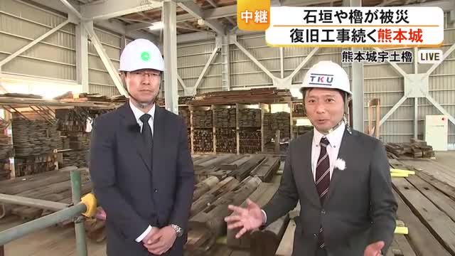ここで再び中継です。熊本地震で石垣や櫓が大きく傷つき今なお復旧工事が続く熊本城からです。