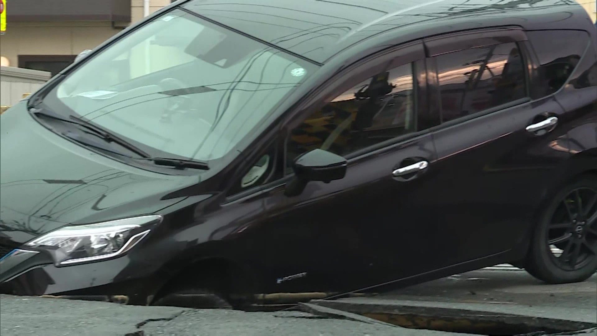 宮城県石巻市にあるJR仙石線の踏切で21日朝、乗用車が陥没した道路にはまり、動けなくなりました。