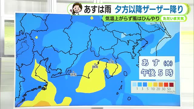 金曜日は明け方まで雨で昼間はくもりの予想です。晴れ間が出てくるのは週末で来週月曜はまた雨、気温は来週はじめにかけて、平年並か若干低めです。重ね着や上着で調節が必要になるかもしれません。あす以降、体感の変化に注意してください。