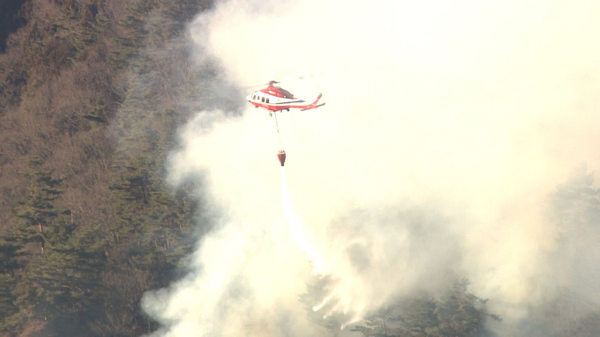 消防では、2機のヘリコプターなどで消火活動を行っていますが、少なくとも400平方メートルを焼いて、現在も、延焼中です。