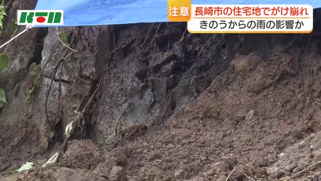 県警や長崎市によりますと、23日午前7時半ごろ、付近の住民から「がけが崩れている」と110番通報がありました。