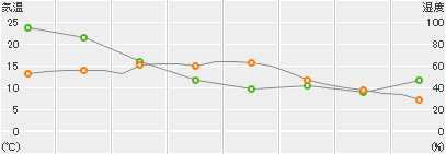 | 湿度(%) | 95 | 86 | 64 | 47 | 39 | 42 | 36 | 47 |