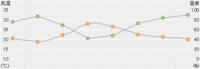 朝までの最低気温 18.7℃ | 最高気温 29.0℃ | ||||||