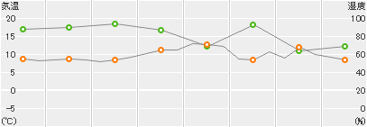 朝までの最低気温 7.3℃ | 最高気温 13.4℃ | ||||||